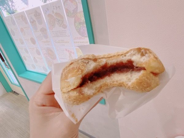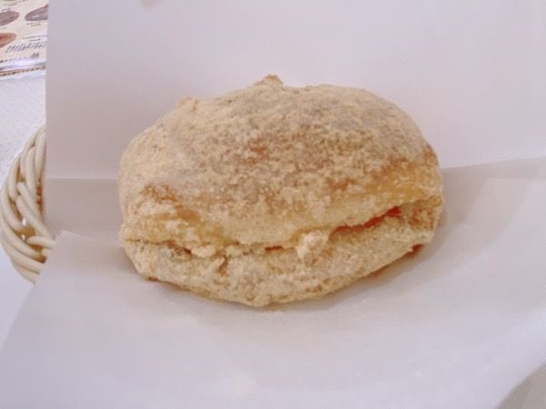 わたくしmariPanの大好物でもあるきな粉とあんこのコラボがあるなんて、これはいくしか、、、!!! ショーケースに商品がなかったのですがすぐに作っていただきました。 もうね、きな粉の香りがたまらなくよき。中は何アンだろうとワクワクしながらいただきます! 「よっしゃ!つぶあんや!!! 」と心の中でガッツポーズをしながら笑みがこぼれました。(笑)甘ったるくなくて、きな粉とつぶあんの相性が非常に良い。なにより生地がもっちもちで新感覚のドーナツって感じです。マラサダはまるなぁ。。