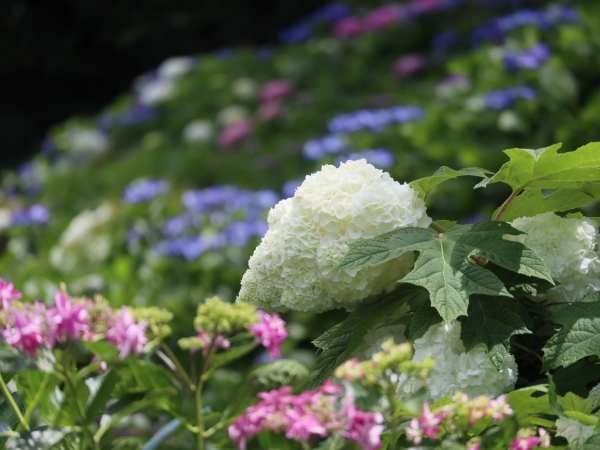 ガクアジサイやポップコーンという名前のかわいらしいあじさい、アナベルなど種類も豊富です。