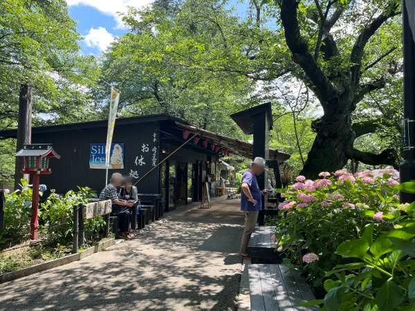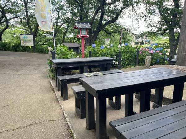 権現堂には、パンやコーヒー、ソフトクリームをいただけるお店が常設していて、あじさいを眺めながらのんびり過ごすことができます。