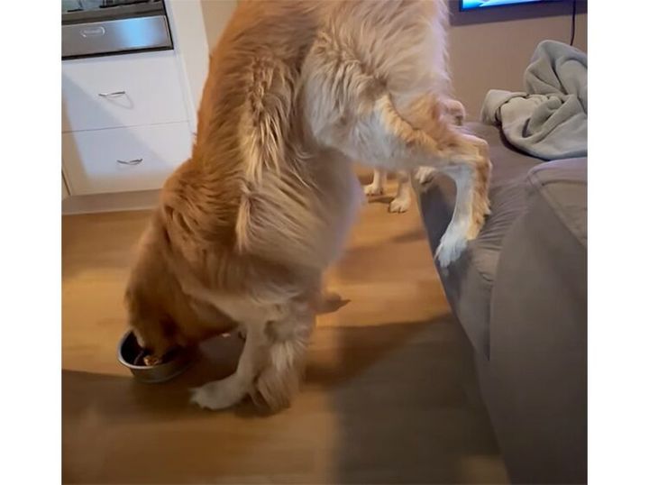 3. ゴハンまっしぐら! 夢中になりすぎて変なポーズになっちゃう犬さん。