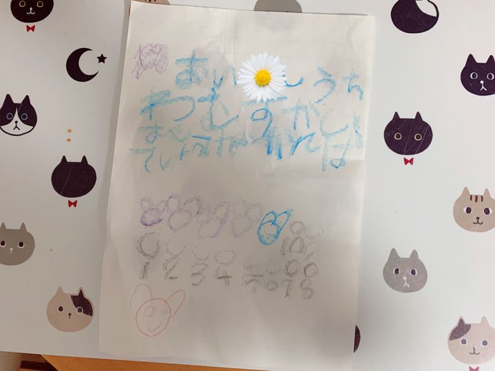 「がんばてね(がんばってね)」「うちもがばってね(うんちもがんばってね)」所々の間違いが可愛い新一年生兄作