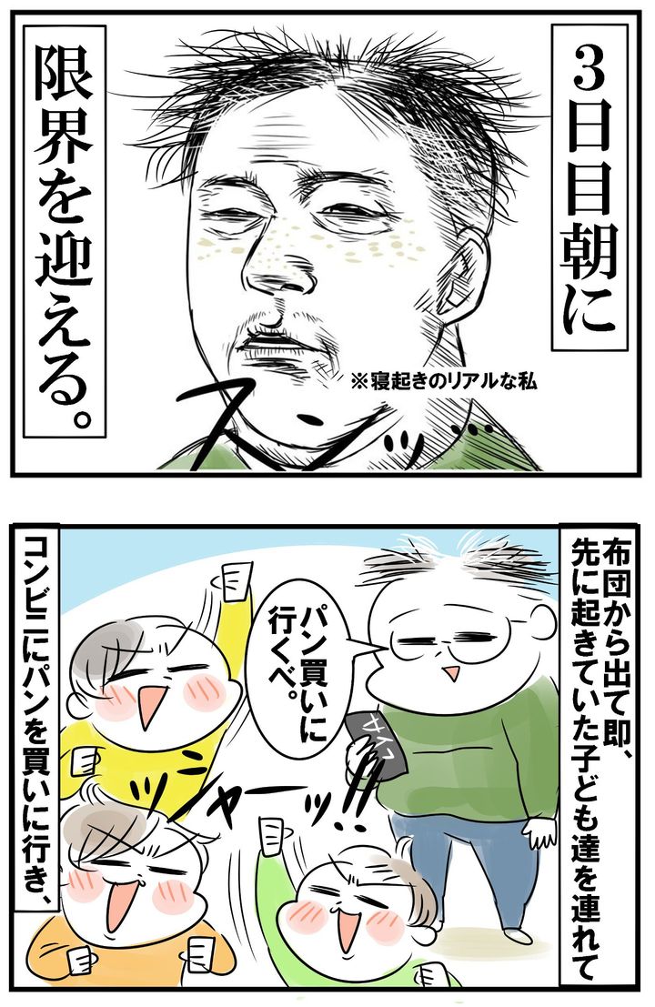 目覚めた瞬間に、『あ…これ…無理なやつ…。』となり、起きたてそのままの状態で子ども達を連れてコンビニへ。(一番近いコンビニは車で片道15分)