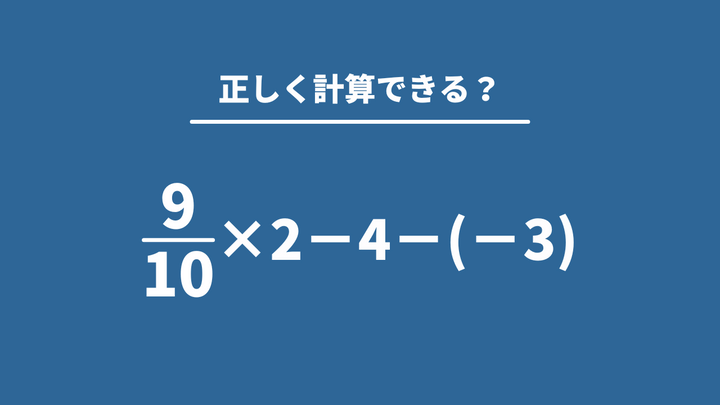 大人が意外と解けない数学「(9/10)×2−4−(−3)」→正しく計算できる?