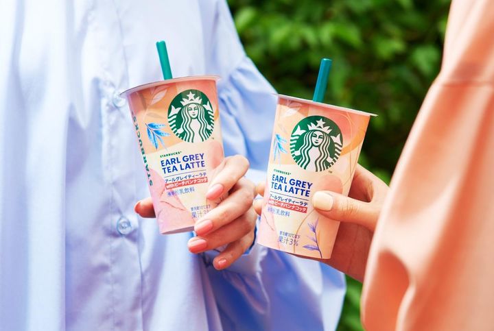 パッケージはパステルカラーを背景に、アールグレイティーとミルク、ピーチパンナコッタが混ざり合うような、華やかなイメージ。いままでプラスチックのキャップが付いていましたが、今回外されたのは、スターバックスの全チルドカップ商品において約15%のプラスチック使用量削減を実現するため。地球のよりよい未来を目指したサスティナブルな取り組みも進められています。