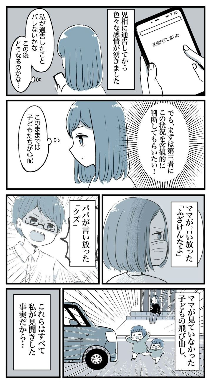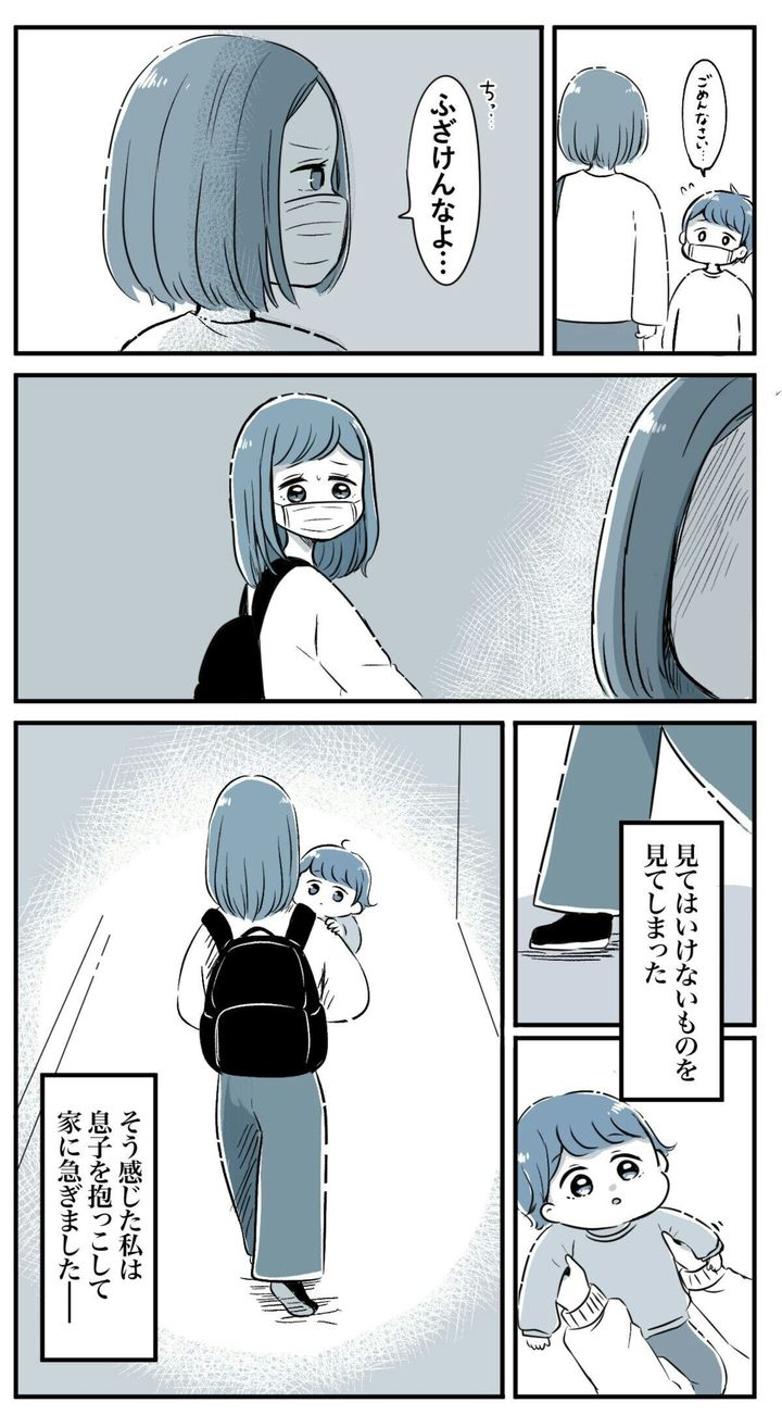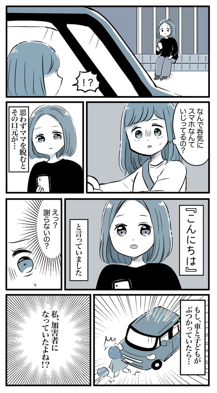 「もし勘違いだったら」と思ったり、自分やわが子が「巻き込まれたら」と不安を感じたり。葛藤や躊躇(ちゅうちょ)する気持ちがある中でも、子どもの安全のために主人公が動いた瞬間でした。