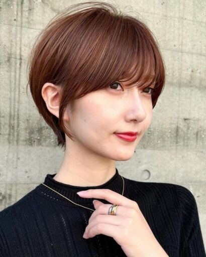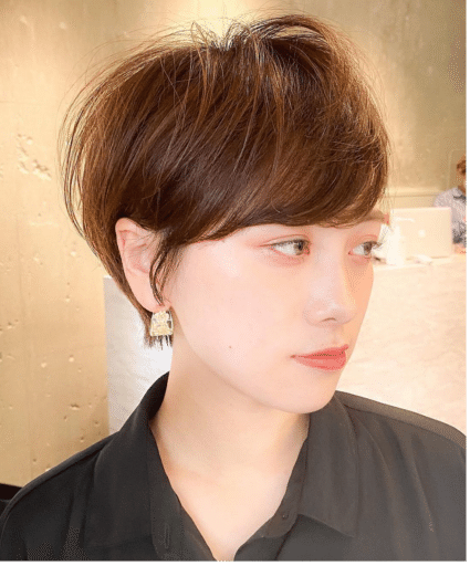 若見え&おしゃれ感UPを叶える上で重要になるのが目元の印象。そこでおすすめの前髪のスタイルが長めの前髪で作ったシースルーバング。全体を短くコンパクトにまとめたシンプルなマッシュショートでも目元印象がグッと引き立ちます。