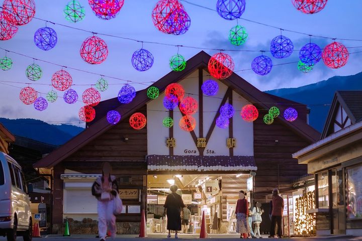 また期間中、強羅駅前では約60球の竹まりを飾ったライトアップ「竹まりの灯り」が実施されます。電車到着後の夜の駅前を明るく盛り上げたいという思いから、箱根強羅観光協会が行っています。