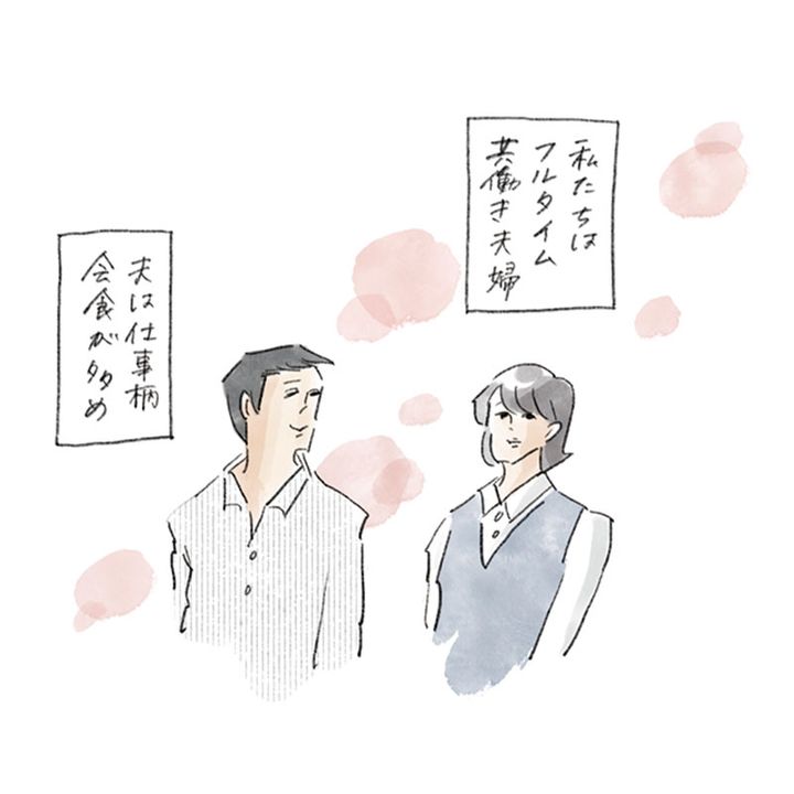 子1人の3人家族で共働き。夫は自営業のため時間の融通は利くが仕事量は多く、クライアント開拓のための営業も欠かせない。