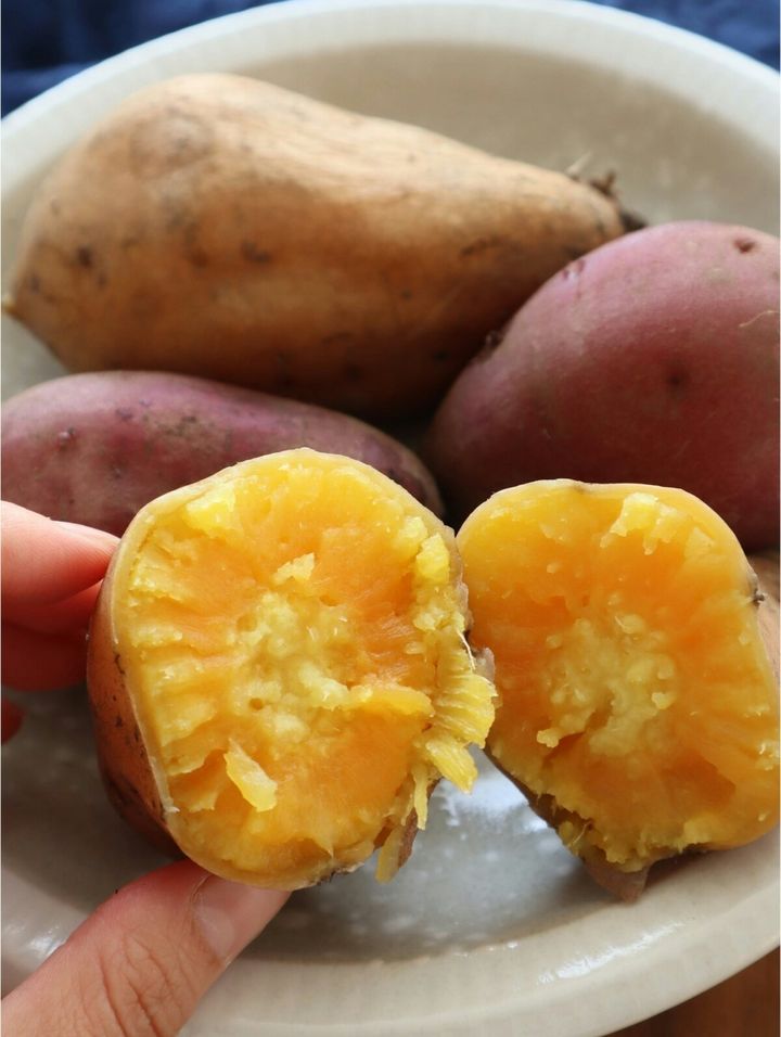 1.市販の焼きいものような「ねっとり系」が好きな方は、「安納芋」や「シルクスイート」「紅はるか」などを使用するのがおすすめ。「ほくほく感」が好きな方は、「鳴門金時」「紅あずま」などを使用してください。