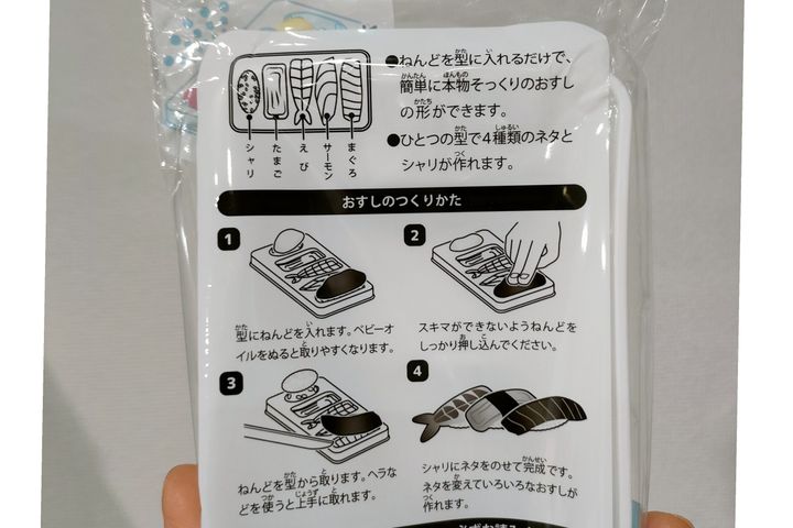 商品はねんどの型が1つなんですが、5つのパーツに分かれています。(4種のネタとシャリ)