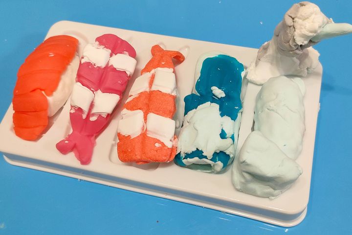 3. 【雨の日遊び】セリアのほんものそっくりねんど型でお寿司を作ろう!!