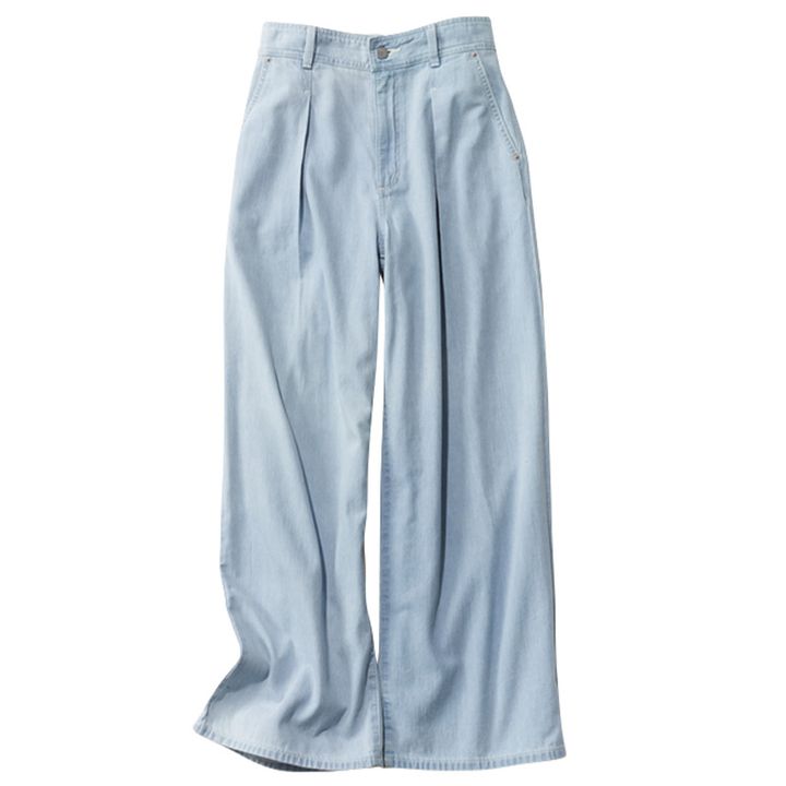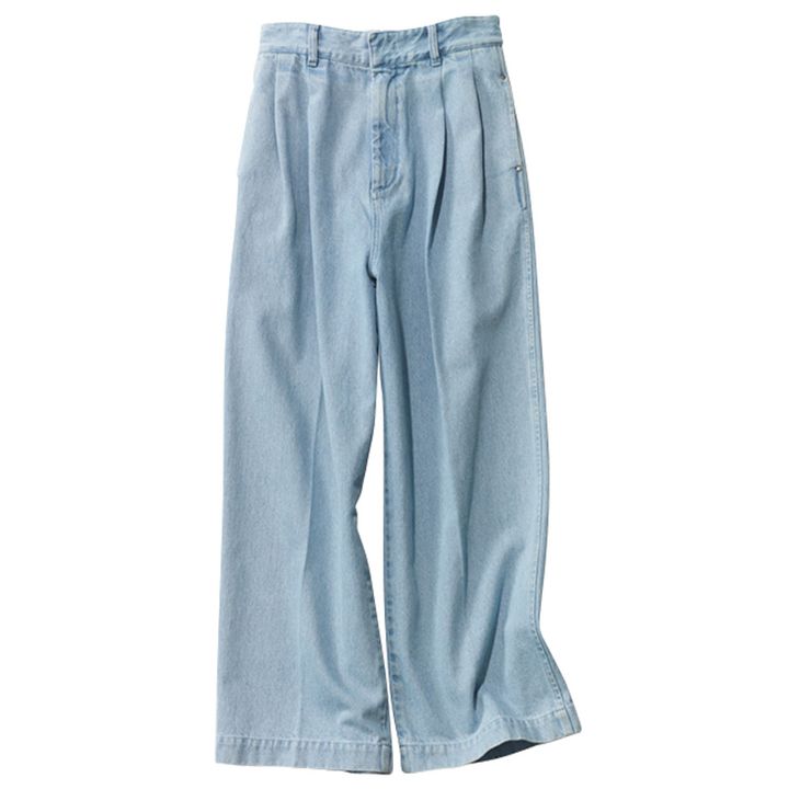 デニムということを忘れる軽量感!締めつけ感が苦手な人にも。 タックライトデニムパンツ¥2,990(GU)