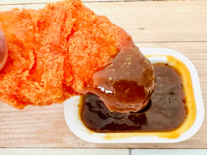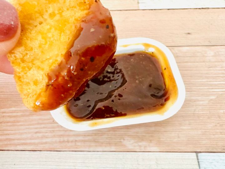 続いて「スパイシーチキンマックナゲット」をディップ。ナゲットの辛味もありながら後味はスッキリで、手が止まらなくなりそうな絶妙な口当たりでした。