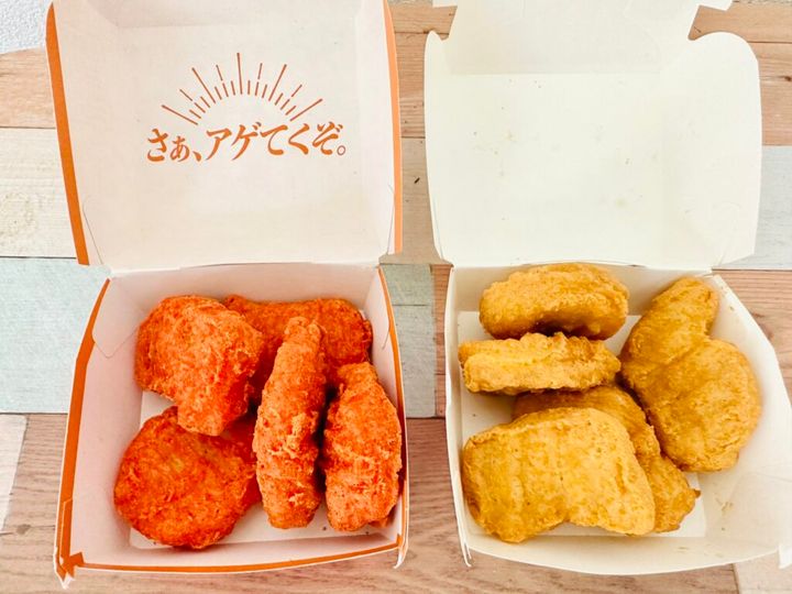 マックのチキンナゲットといえば、ゴールデンブラウンのカリッとジューシーな「チキンマックナゲット」(写真右)が定番ですが、期間限定で今だけ楽しめるのは「スパイシーチキンマックナゲット 5ピース」(写真左)です。初めて登場したのは2018年。全世代に愛される『マクドナルド』において、真っ赤な色合いと刺激的な辛さが人気の秘訣となっています。