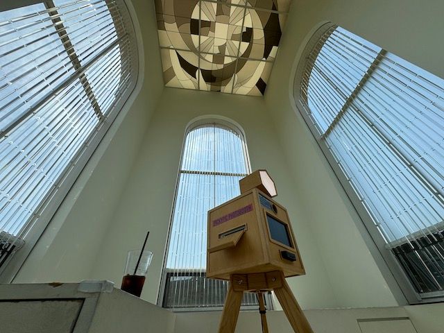 ステンドグラスの鮮やかさに誘われて階段を上がると、大きな木が! なんと建物の中に木があり、室内なのにピクニックをしている気分になります。木の周りの席は人気なので空いたらぜひ座ってみるのがおすすめ。他にもステンドグラスの近くで写真を撮るのも人気です。天井が高いので開放感に溢れており、3階に上がれば2階の席を一望することもでき、どこの席に座っても楽しめる設計になっています。