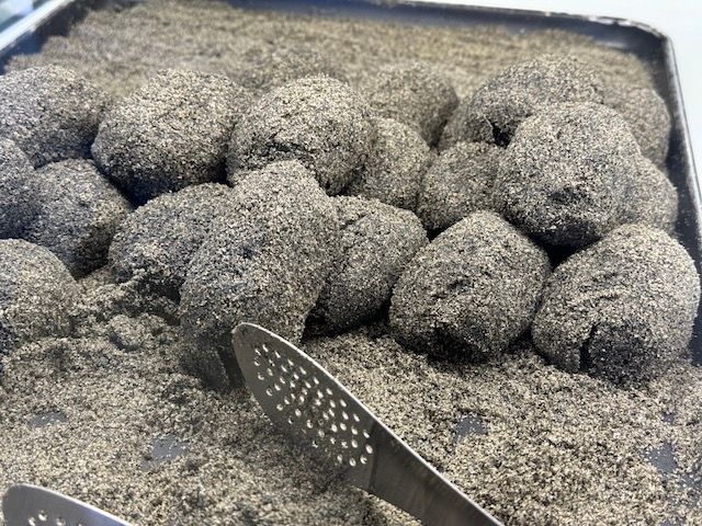 黒いものはカスタードクリームが入っているのですが、ベージュのものはきな粉でまぶされ、あんことカスタードクリームが入っています。焼く時間が提示されるほど人気でなので売り切れ必至。食べたい人は公式SNSをチェックしておきましょう。