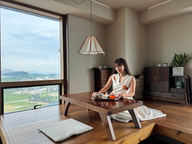 海を望みながら韓国式アフタヌーンティーを楽しめる伝統茶カフェ