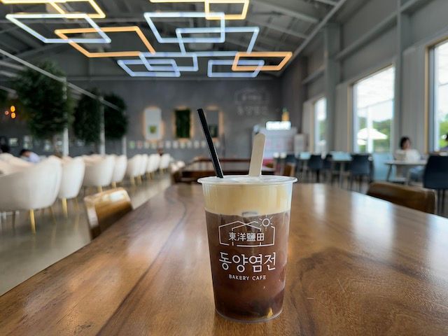 仁川エリアは昔は塩田が広がっていたそうで、当時使われていた関連施設をリノベーションしたカフェが韓国でも話題に。「동양염전베이커리카페(トンヤン塩田ベーカリー)」もそのひとつで、工場のような入り口には種類豊富なパンがずらり! なんと韓国の番組で、「250種の国内最大のパン天国」と紹介されていたほど、多くのパンが陳列されていました。塩田だけあり、人気なのは塩パン。ジューシーなバターの香りに塩味が効いて、たまらない味わいです。