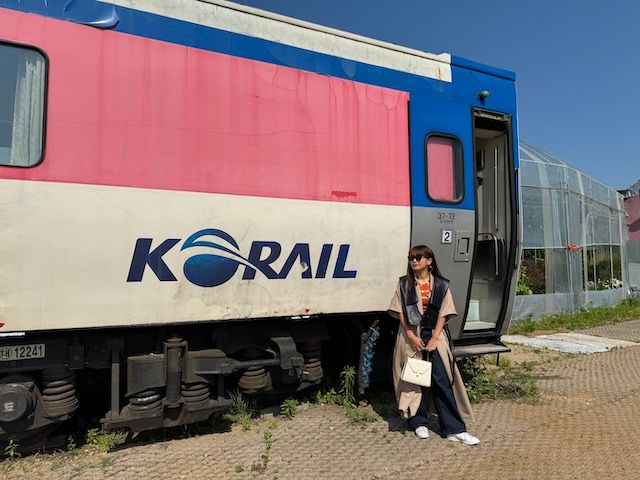 さらに、驚きなのは昔使われていた韓国の電車が置いてあること! なぜ置いてあるかは不明ですが、中に入ることもできました。内部は夏は暑くて冬は寒いと思うのでおすすめしませんが、フォトスポットという面では、他にできない体験なのでぜひ写真を撮るためにも足を運ぶ価値があるかも!