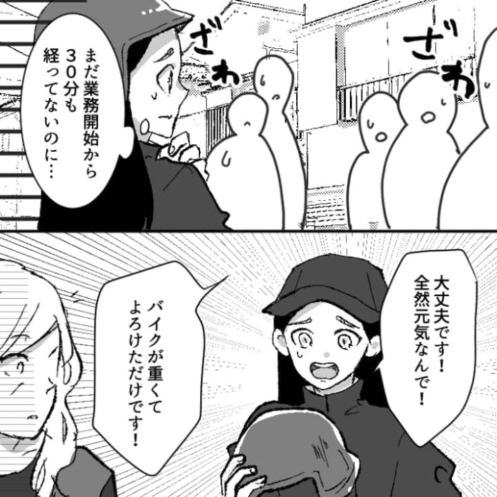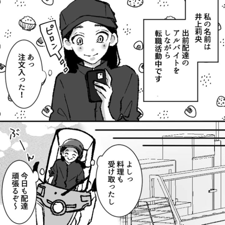 転職活動のために仕事を辞めてアルバイトで生計を立てている主人公。慣れない作業にも少しずつ慣れてきたようです。