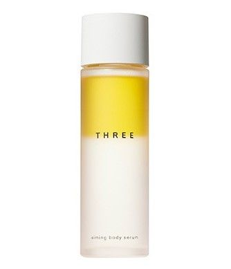 エミング ボディセラム 97mL 8,800円/THREE 保湿力の高いボディ美容液。油分と水分が絶妙なバランスで配合され、乾燥が気になる肌を包み込む。ローズにハーブを掛け合わせた色っぽく、うっとりするような香りが、カジュアルになりがちなクルーネックニットのギャップとして作用。