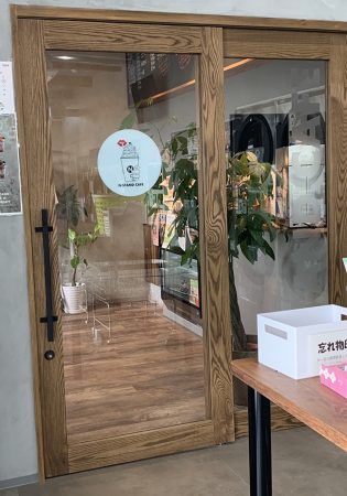 とてもオシャレなデザインのドアは、コインランドリーからカフェに入ることができます!