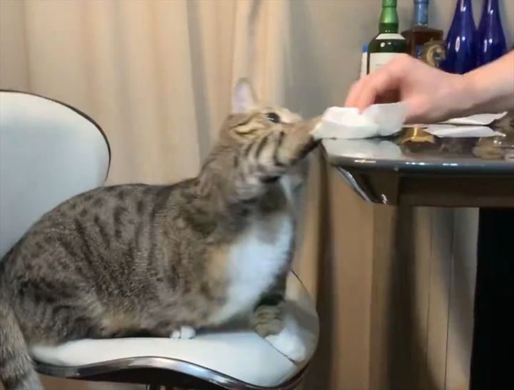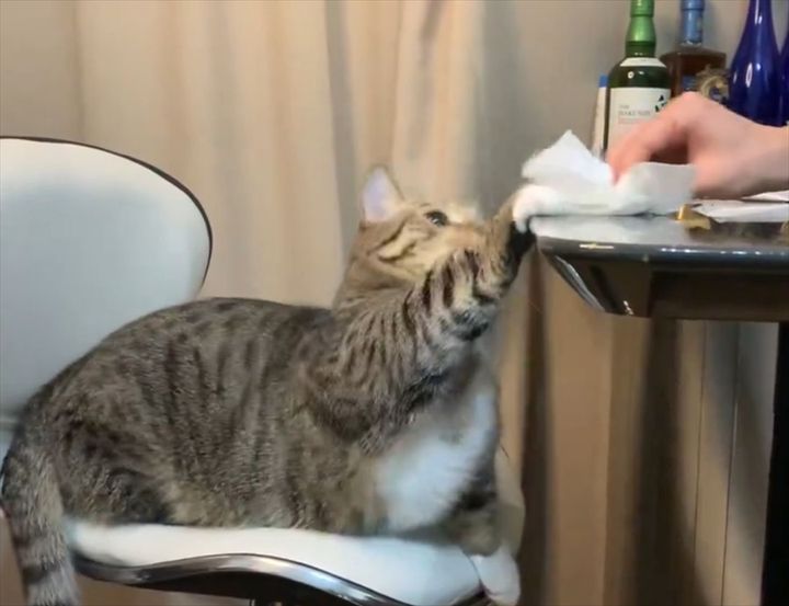 飼い主さんとのこのやり取りをぽんたくんはとても気に入ったみたい。 この日から、飼い主さんがテーブルを拭くたびにやって来てはおててを伸ばすようになったそうですよ。