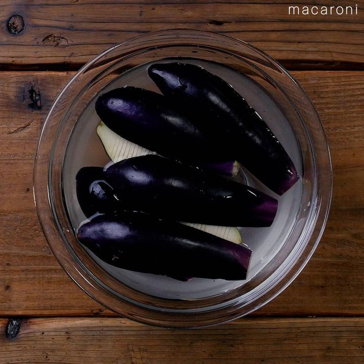 なすは塩水に浸すことで油の吸いすぎを防止できます。