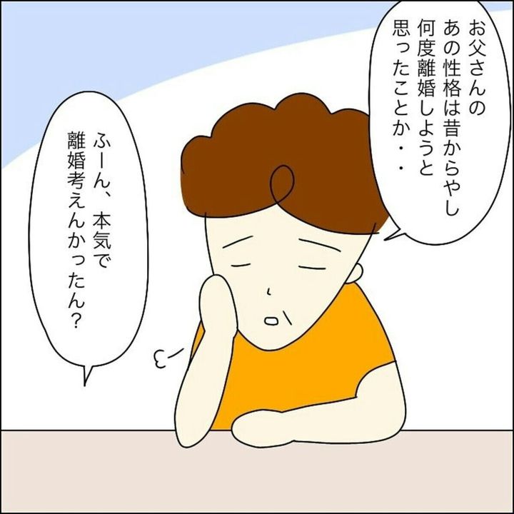 自営業のため1日中一緒にいる両親は仕事のことで衝突することも多々あり、定期的に「出ていけや!」「そうさせてもらいます!」というやりとりがあったそう。それを見ていたツマ子さんは「またか…」と思うだけで、それほど大事には捉えていなかったようですね。