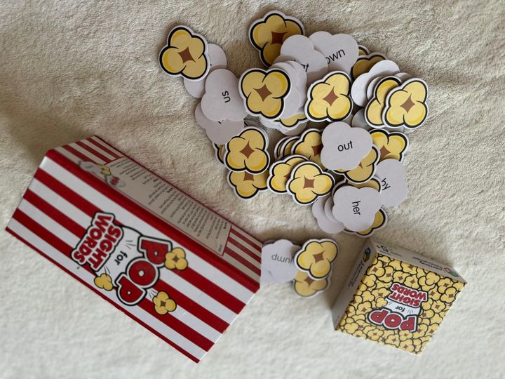 Learning Resources社のPOPは、サイトワードを遊びながら楽しく覚えられるカードゲームです。サイトワードは、英語圏の子どもが、簡単な英単語を視覚的に覚えているものであり、リーディングやライティング力に大切な学びです。ポップコーンに見立てたカードを引きながら、家族みんなで楽しく遊ぶことができます。