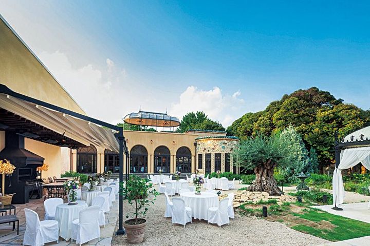 コロニアル様式の風情ある建物が舞台1927年に建てられた、都内ではめずらしいスペイン様式の洋館「小笠原伯爵邸」。掻き落とし仕上げと呼ばれるクリーム色の壁にエメラルドグリーンのスペイン瓦が印象的です。豪華な私邸にゲストを招いたかのような、ラグジュアリーかつプライベート感あふれるウエディングが実現。