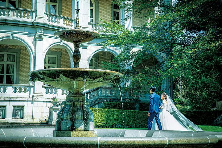 明治期のロマンが漂うエレガントな佇まい造幣局として建てられ、150年以上の歴史を誇る「旧桜宮公会堂」。レトロとモダニズムが融合したゲストハウスとして生まれ変わり、優美な非日常のスペースが花嫁を魅了しています。また敷地には6000坪もの広大な庭園があり、自然光あふれるガーデン・ウエディングも素敵です。