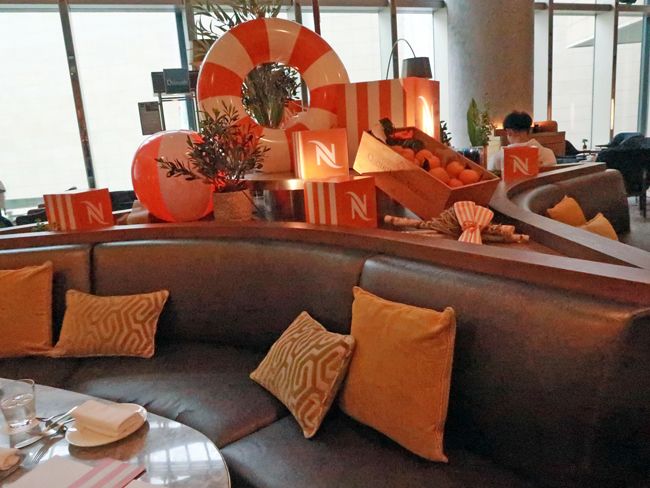 「マンダリンオレンジ」で装飾された会場は、まるで夏のバカンスに出かけた先のホテルのような大人っぽい雰囲気。ホテル内には海外からの観光客も多く、まるで海外にいるような気分に。
