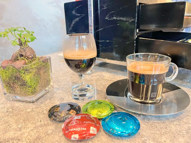1杯ずつ抽出したネスプレッソのコーヒーを使ったスイーツセレクション