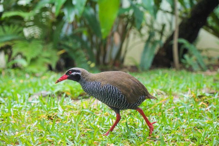 「ヤンバルクイナ」は、「水鶏(クイナ)」という鳥の一種で赤いクチバシと足が目を引きます。 羽が短く、飛ぶよりも歩いて移動する姿の方観測される割合が高いのだとか。 世界的にも、沖縄県のやんばる(山原)地方にしか生息していないことから、「山原水鶏」という名前になりました。