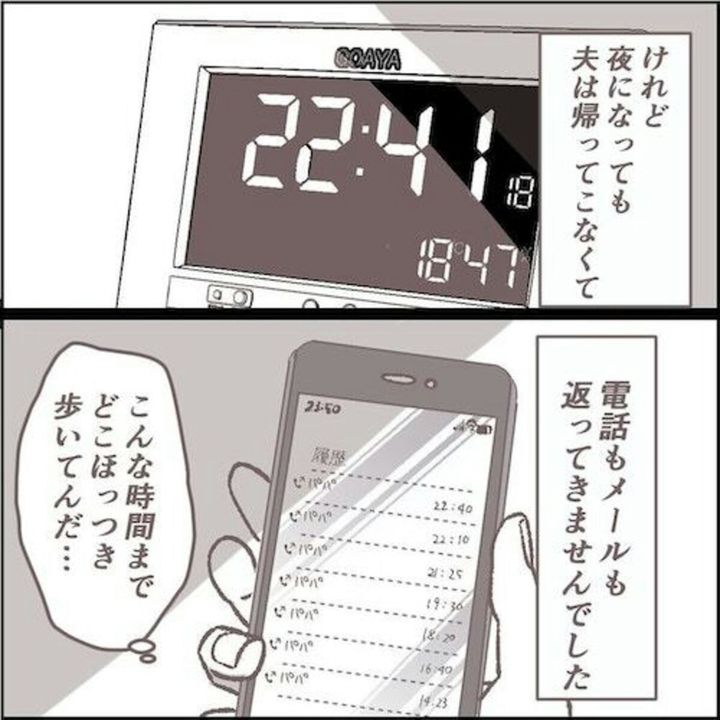 小さな子どもを育てている中、もしこんなシチュエーションにあってしまったら…と思うと背筋に冷たいものが走ります。事故や事件にでも巻き込まれたのか?まさか家出?果たして夫に何がおきたのでしょうか。