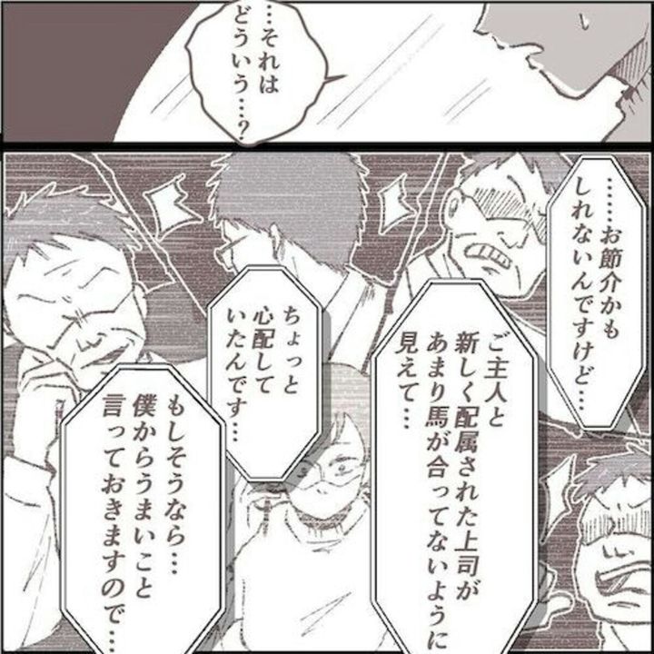 出勤の日だと知らなかったユカリさん。欠勤の理由をどう話そうか悩んでいる中、同僚が続けた話では夫が新しい上司との関係が悪いということ。夫が仕事で大きな葛藤をかかえていたことを知ります。