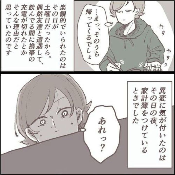 しかし、「もしものとき用貯金」がなくなっていたことに気が付くと不安がつのっていきます。もしかしたら家出かも…と頭をよぎります。