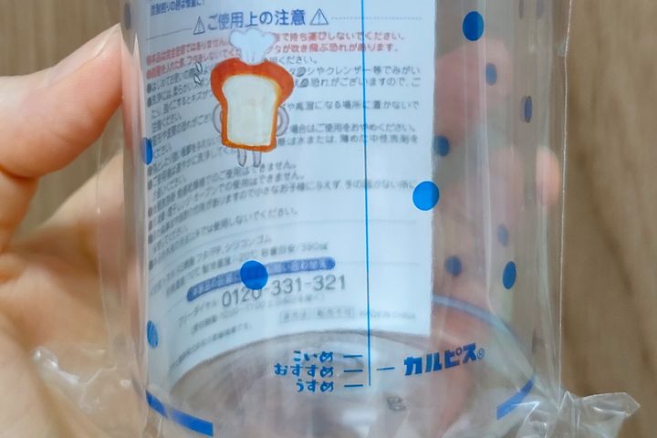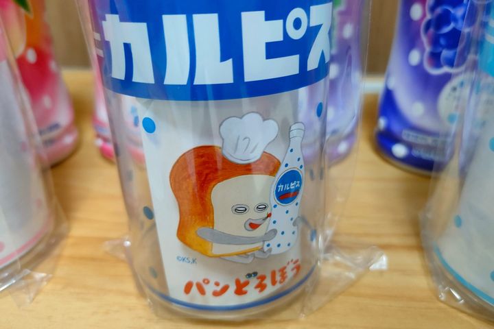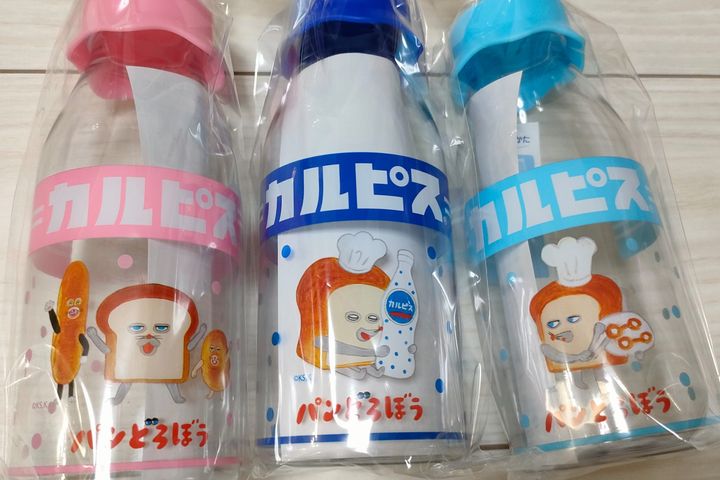 それぞれ絵柄が違うのですが、おすすめは青のパンどろぼうがカルピスを持った限定デザイン。