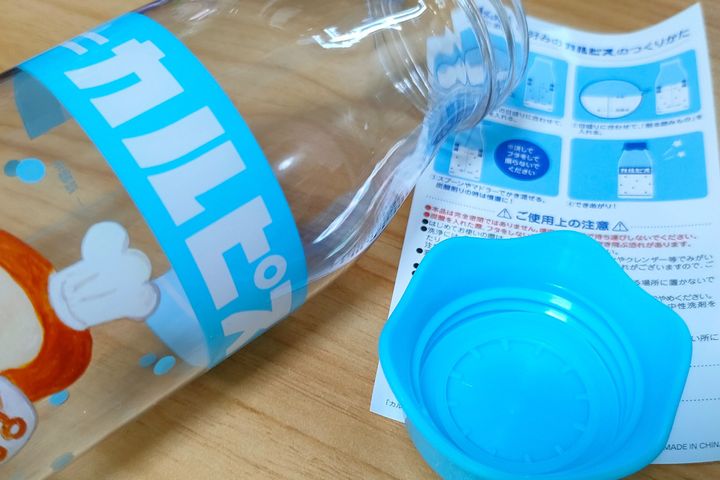 ボトルにメモリが付いていて、カルピス原液をどこまで入れたらいいか分かるようになっています。