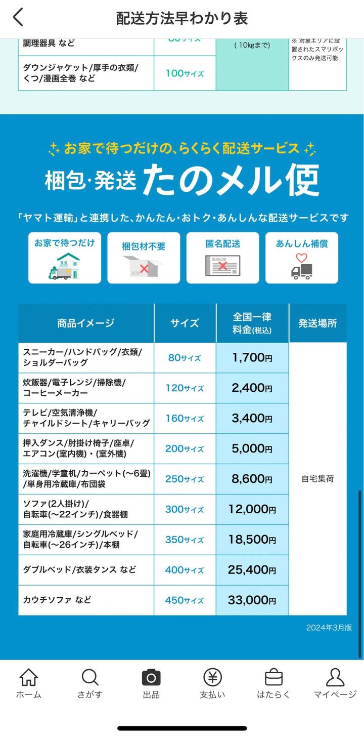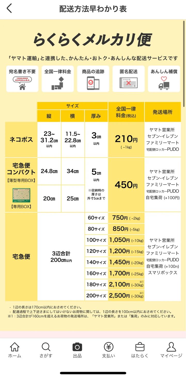 メルカリ便の100円での集荷サービスもあり。