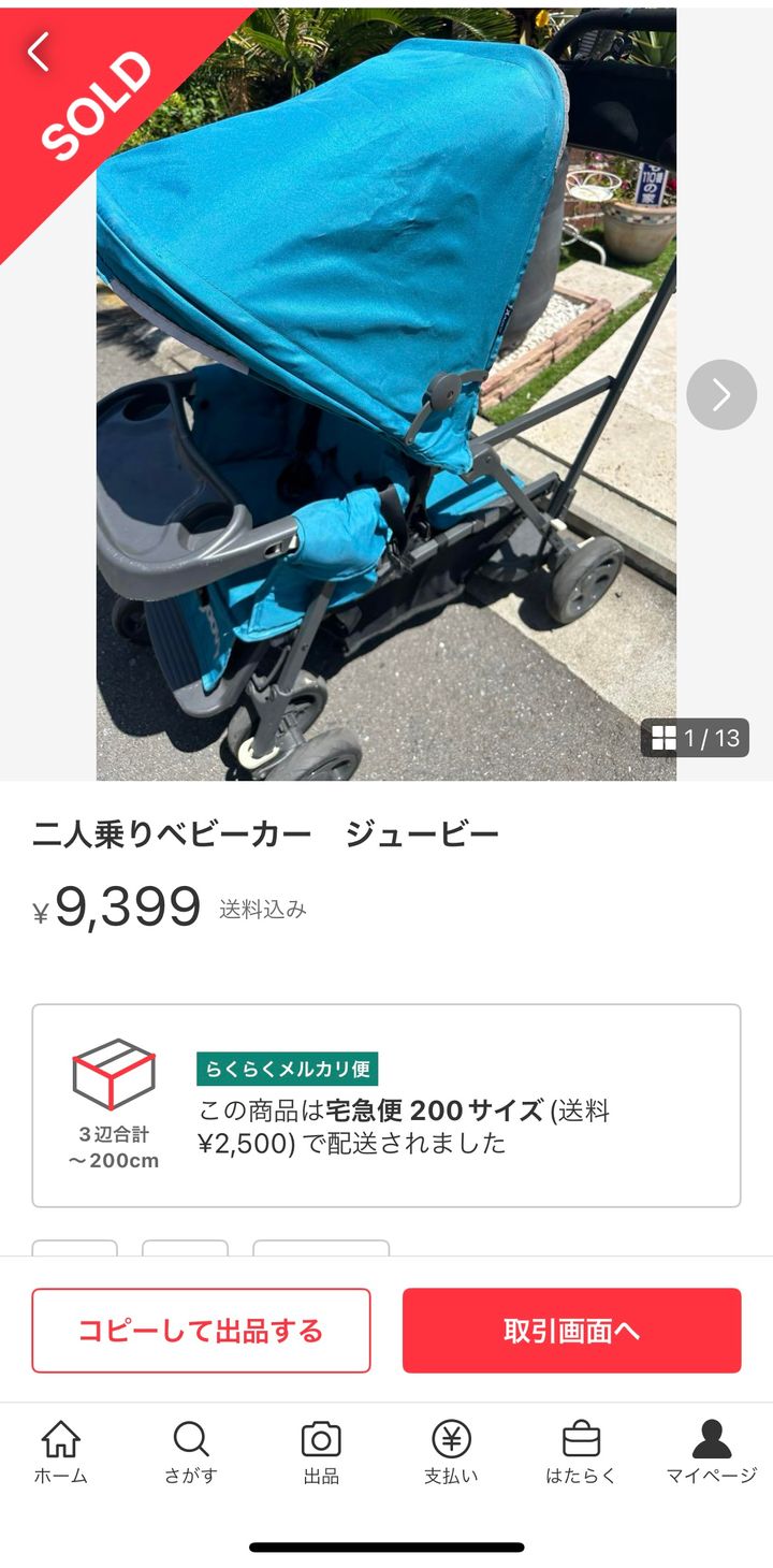 ベビーカーが売れた際に私も利用しましたが軽くヒョイと担いでくれて