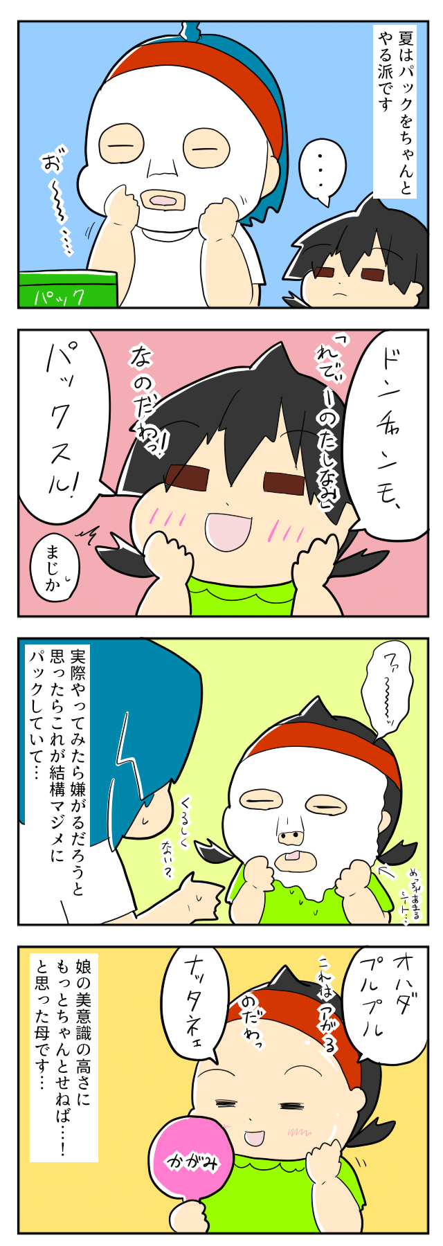 2016年生まれの兄ぽこちゃん、2018年生まれの妹どんちゃんのママであるmochikoさんから、美意識のお話です。フェイスパックをするmochikoさんを見たどんちゃんが自分もやりたいと言って・・・。