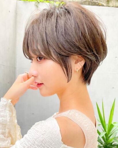 髪流れをきれいに見せるスタイルがトレンドのショートヘアですが、ほんのりくびれ感をを加えるだけで、より大人っぽく上品さが引き立ちます。