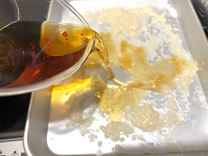 塩と塩麹が残っているバットの中に紹興酒を入れて、