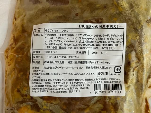 ロピアのお肉屋さんの牛肉カレー