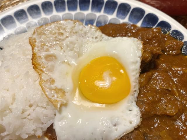 某有名カレー専門店のマネをして目玉焼きをトッピングしてみました。