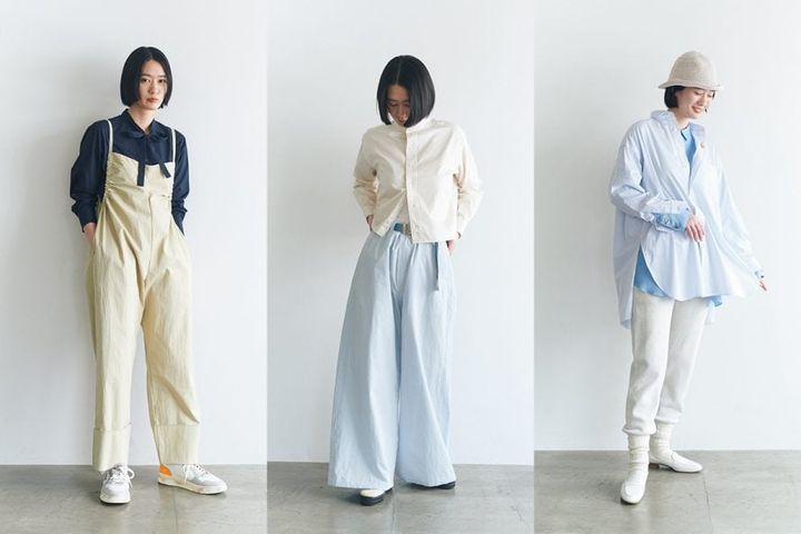 シャツ¥14,960/ミディウミ(マザーズインダストリー)、オールインワン¥36,300/メヤメ(ソークロニクル)、スニーカー¥49,500/オートリー(ジャーナル スタンダード ラックス 表参道店)