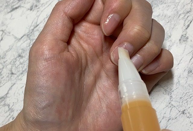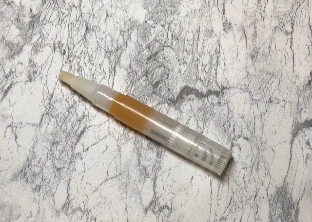 よく似たアイテムで「甘皮ケアオイル」があり、こちらはペン先がチップ状になっています。