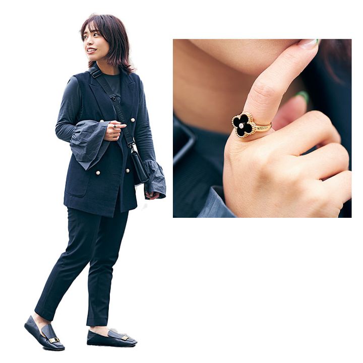 オニキスのブラックに可愛らしいモチーフが魅力 「20代のうちに一生もののリングが一つ欲しかったので購入に至りました。程よく厚みがあり豪華に見え、コーデ映えしてくれます」 MILA OWEN PLST SERGIO ROSSI LOUIS VUITTON